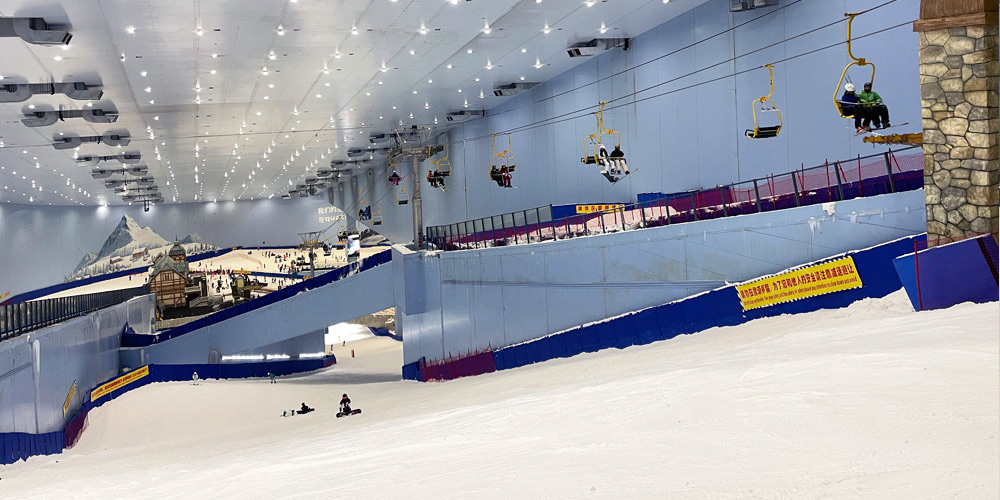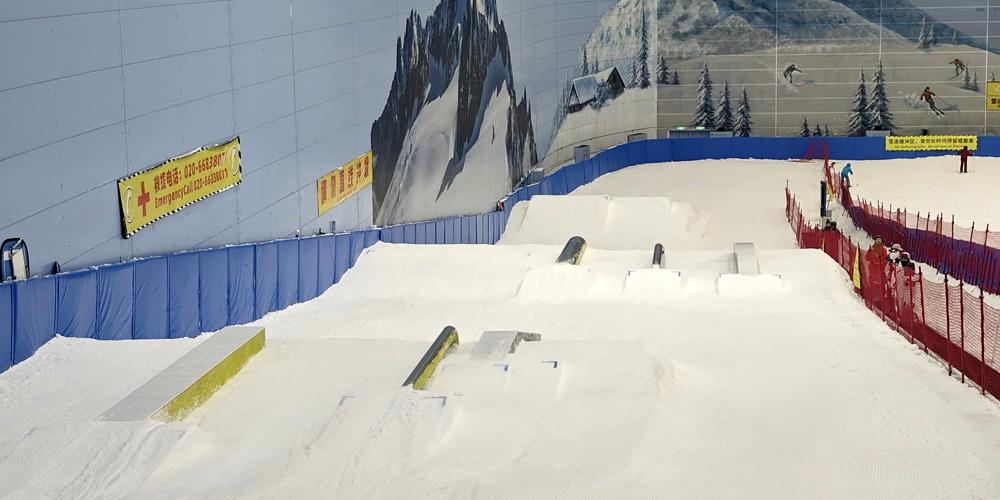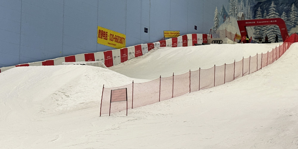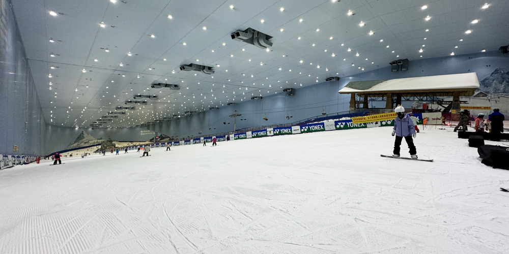 http://guangzhoupark.sunacctg.com 廣州融創熱雪奇蹟室內滑雪場(Guangzhou Bonski),2019年6月13日開業,位於廣州市花都區融創樂園內(Guangzhou Sunac Land)。從香港可乘直通巴士或全程鐵路接駁點到點直達。從香港兩小時生活圈裡找個四季佳可滑雪而極具規模的滑雪場已不是夢了! 廣州融創室內滑雪場佔地7.5萬平方米,是華南地區最大的室內滑雪場,有4條不同難度的雪道,其中一條66米落差的雪道相當於從22層樓高的山坡滑下。 融創室內滑雪場的雪道全面,有兩條斜度約23度的高級雪道,斜度有不同變化,十分好劈! 亦有一又長又闊的中級雪道,山腳有兩條斜度10-14度的初級雪道。山頂及初級雪道旁各有一個 Snow Park,設有跳台、Box、Rail 等。整個滑雪場設計相當適合玩 Snowboard。山腳旁有冰上單車、水泡車、滑梯等,一家大細都照顧到。 室內滑雪場有這個規模加上可即日來回的距離,值得我們週末到這裡享受滑雪假期。 廣州融創室內滑雪場設施: